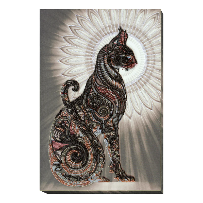 DIY Bead Embroidery Kit "Bast in the night" 12.2"x18.5" / 31.0x47.0 cm